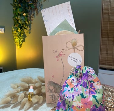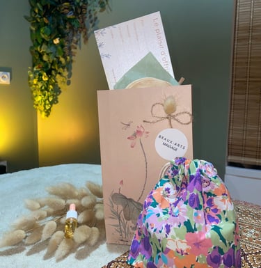 Pochette cadeau + pochon, coton lavable & huile sensorielle OFFERT