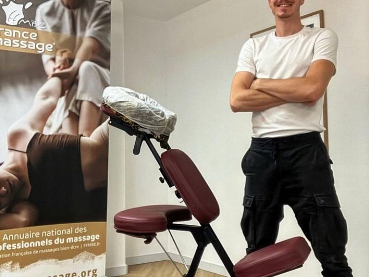 Profitez d'un massage relaxant sur chaise ergonomique pour réduire le stress au travail.