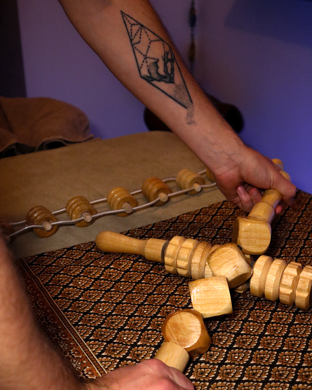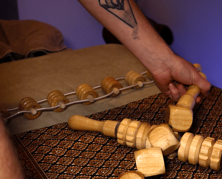 Technique de massage amincissant et dynamique avec l'aide d'outils en bois, travail sur les jambes, fessiers, ventre et visage. Nous prenons un temps d'échange sur la 1ere séance pour définir votre projet.